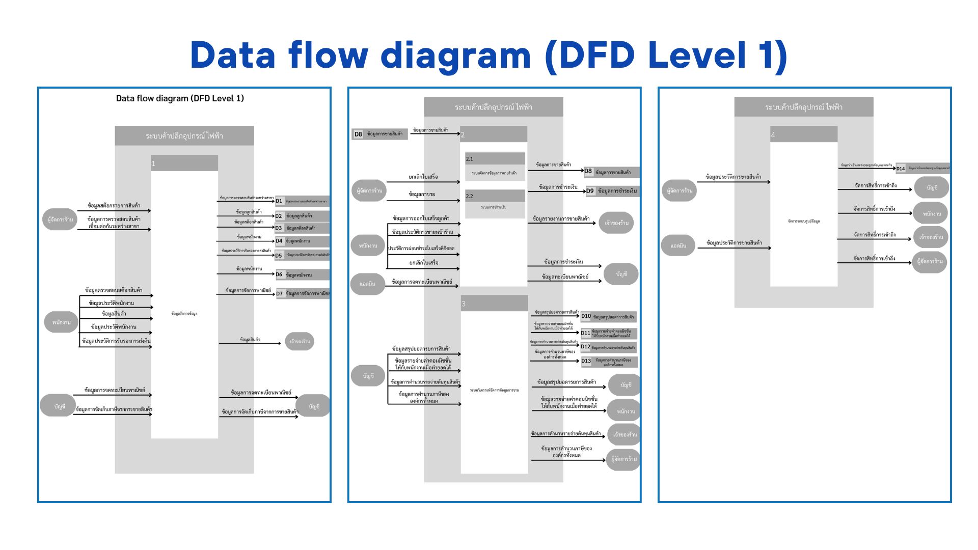 ภายในโปรเจกต์ได้มีการออกแบบโมเดลและเอกสารต่าง ๆ ที่ใช้ในกระบวนการวิเคราะห์ระบบ เพื่อแสดงโครงสร้าง ความสัมพันธ์ของข้อมูล และการทำงานของระบบอย่างเป็นระบบ