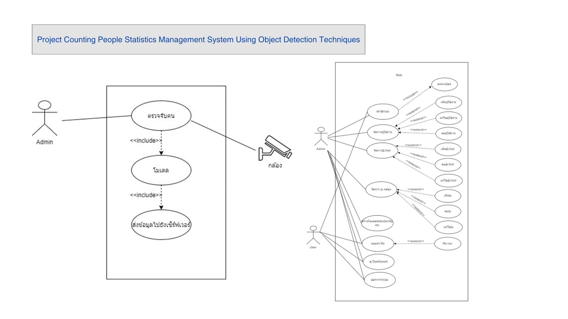 โปรเจกต์นี้เป็นส่วนหนึ่งของรายวิชา System Analysis and Design และ Project Counting People Statistics Management System Using Object Detection Techniques โดยมีวัตถุประสงค์เพื่อศึกษาและฝึกกระบวนการวิเคราะห์และออกแบบระบบสารสนเทศ ตั้งแต่การรวบรวมความต้องการของผู้ใช้งาน การวิเคราะห์โครงสร้างระบบ ไปจนถึงการออกแบบฐานข้อมูลและกระบวนการทำงานของระบบก่อนนำไปพัฒนาจริง